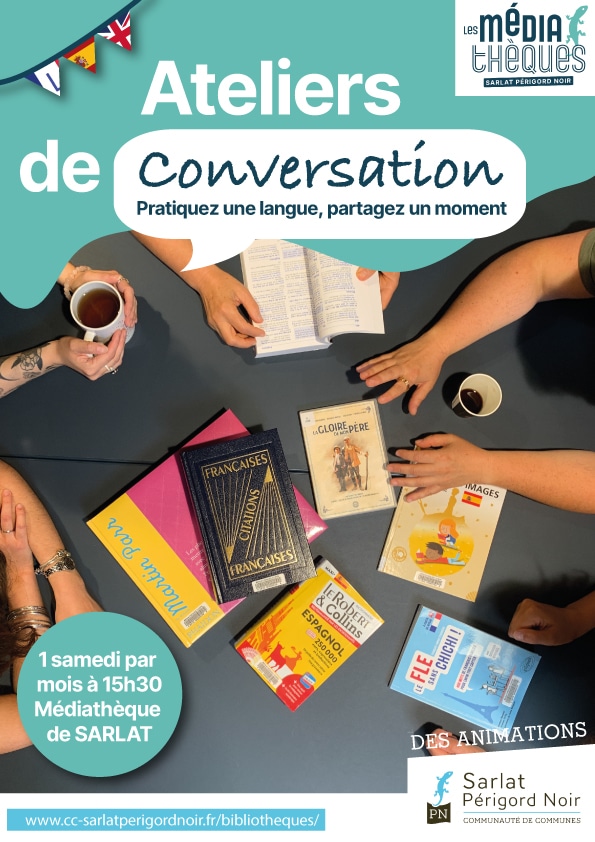 La Médiathèque de Sarlat propose des ateliers de conversation en anglais, en espagnol et en FLE (Français Langue Étrangère). Animés par des bénévoles, ces ateliers sont conçus comme des espaces de pratique vivante, dans une ambiance propice à lʼéchange.