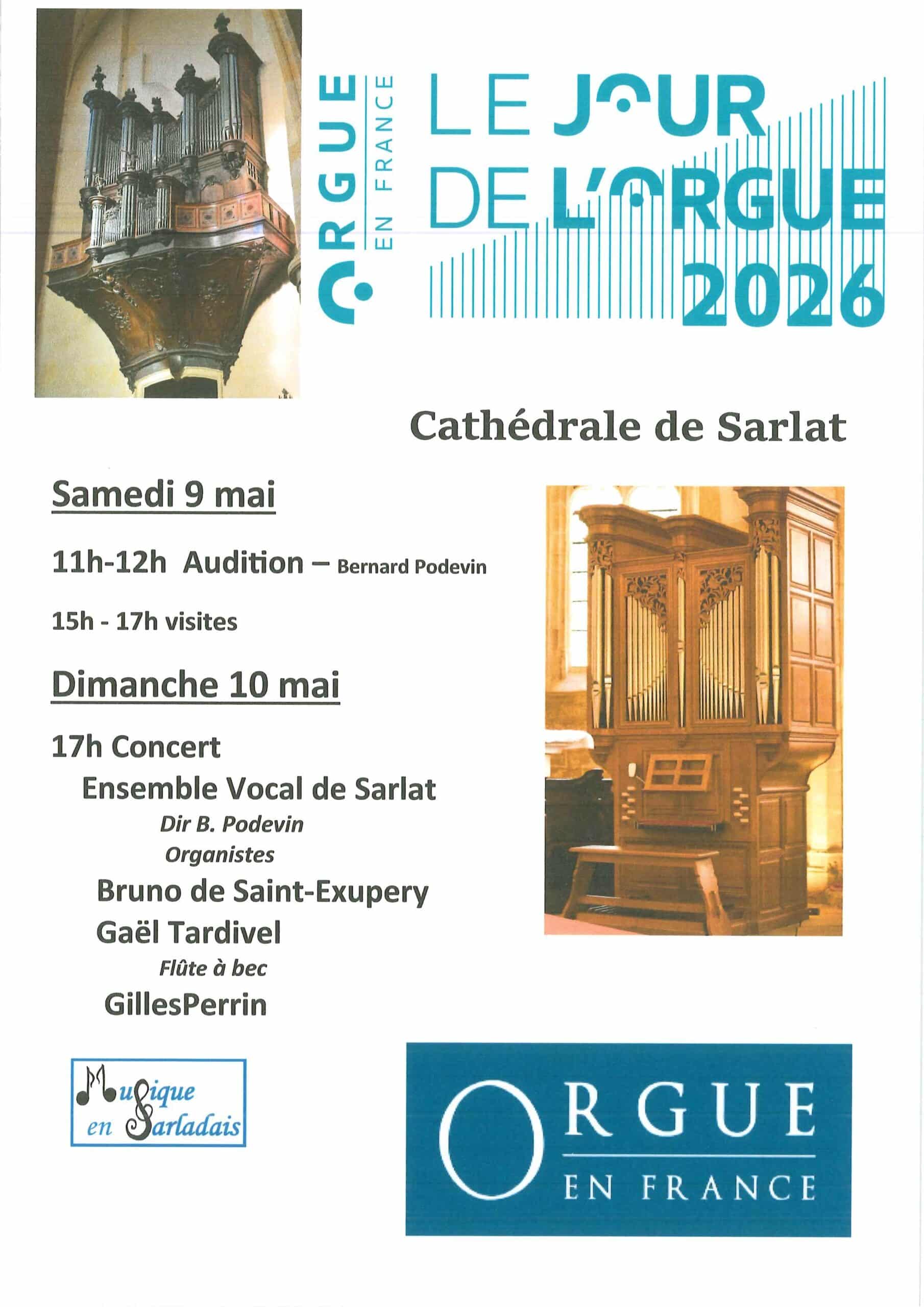 Avec l'accord de la paroisse le soutien de la municipalité et de Musique en Sarladais, l'équipe des organistes de la cathédrale a souhaité marquer cet évènement en organisant audition, visites et concert avec 1 'Ensemble Vocal de Sarlat. Une occasion de plus de mettre en valeur de Grand Orgue (Lépine - Cattiaux) construit il y a 274 asn et restauré en 2005, ainsi que que l'orgue de choeur reconstruit en 2006.