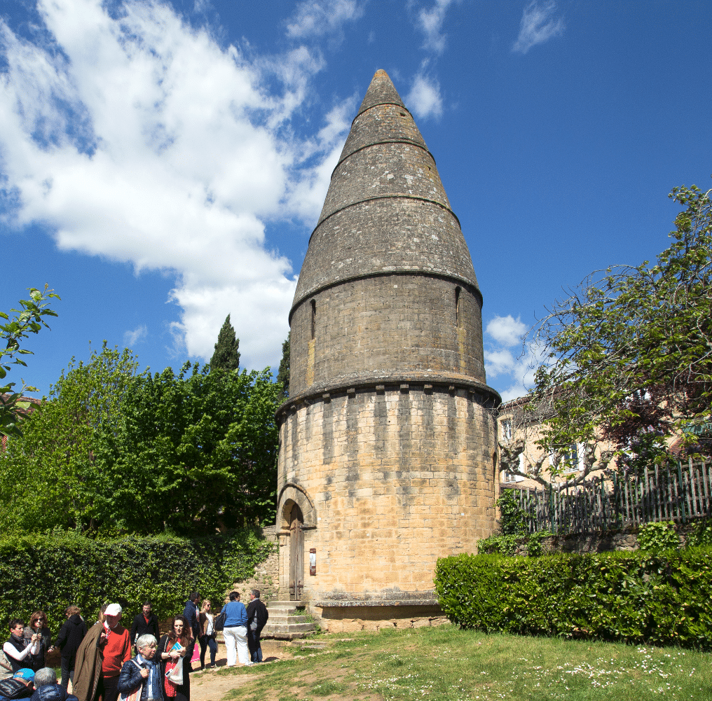 Située dans l’ancien cimetière Saint-Benoît, la Lanterne des morts est sans conteste l’édifice le plus énigmatique de Sarlat. Bâtie au XIIe siècle, elle connaît plusieurs appellations au fil des siècles : Tour Saint-Bernard en référence à son passage à Sarlat au XIIe siècle, fanal sur le plan de Jean Tarde au XVIIe siècle, chapelle sépulcrale et Lanterne des morts.