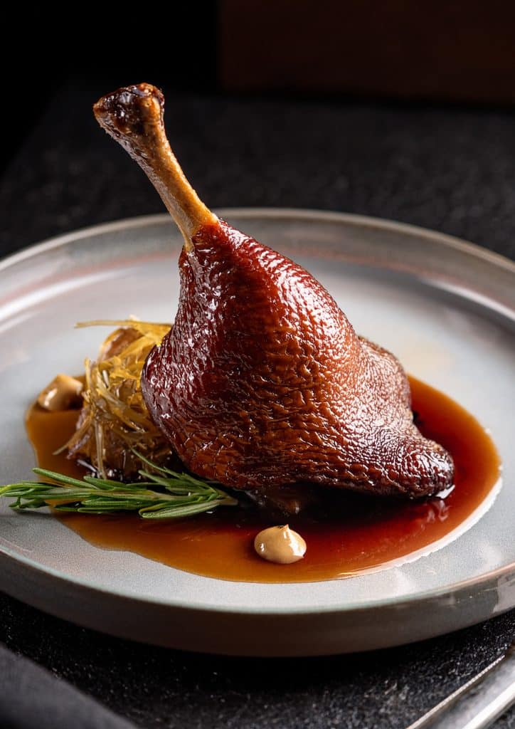 - Finition avant service : Pour déguster immédiatement, prélevez les cuisses confites égouttées. Faites-les dorer côté peau dans une poêle ou au four chaud pendant 15 minutes, jusqu’à ce que la peau soit bien croustillante.