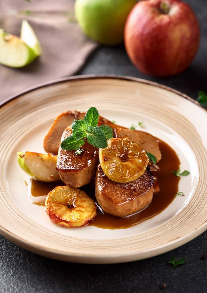 Foie gras poêlé aux pommes caramélisées