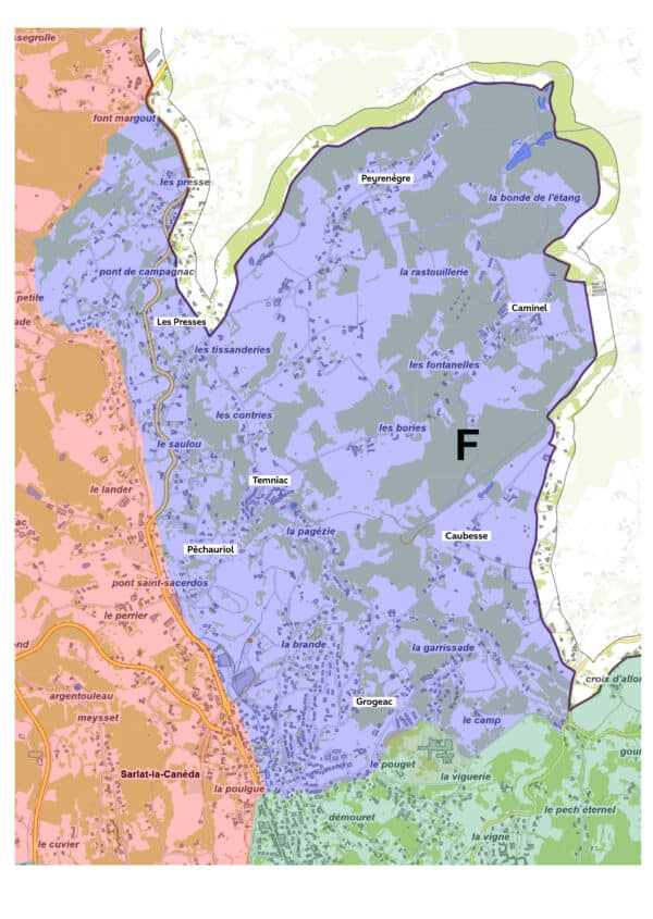 Impasses Aimeric de Sarlat, Alan Turing, Anne de Dautrery, Combe de Rieux, de la Bohème, de la Fête des Pains, de la République, de la Source, de la Trappe Haute, de Pissevit, de Turenne, des Bruyeres, des Clarisses, des Épicuriens, des Pechs Sud, des Soupirs, des Truffières, des Vignerons, du Troubadour Cairel, du Vieux Lavoir, Elias Cairel, Françoise Dolto, Gabriel Leulier, Giraut de Salignac, Guy Hatchi, Henriette Amable, Jean Marcel Delmon, la Viollete, Nicolas Copernic, Vasco de Gama