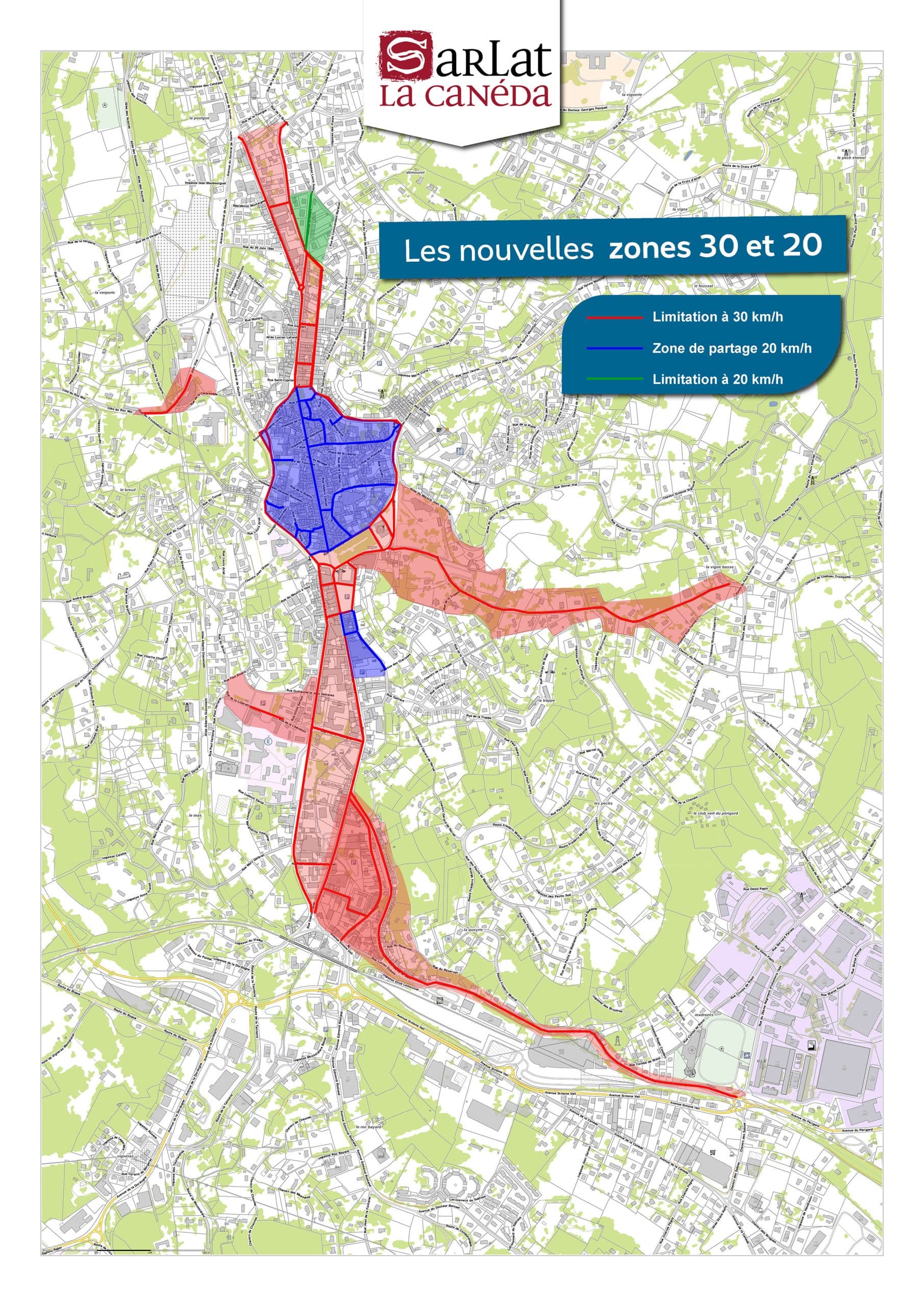Des zones de rencontre, avec vitesse limitée à 20 km/h, ont été aménagées rue Jean-Baptiste Delpeyrat, secteur sauvegardé et avenue Thiers.