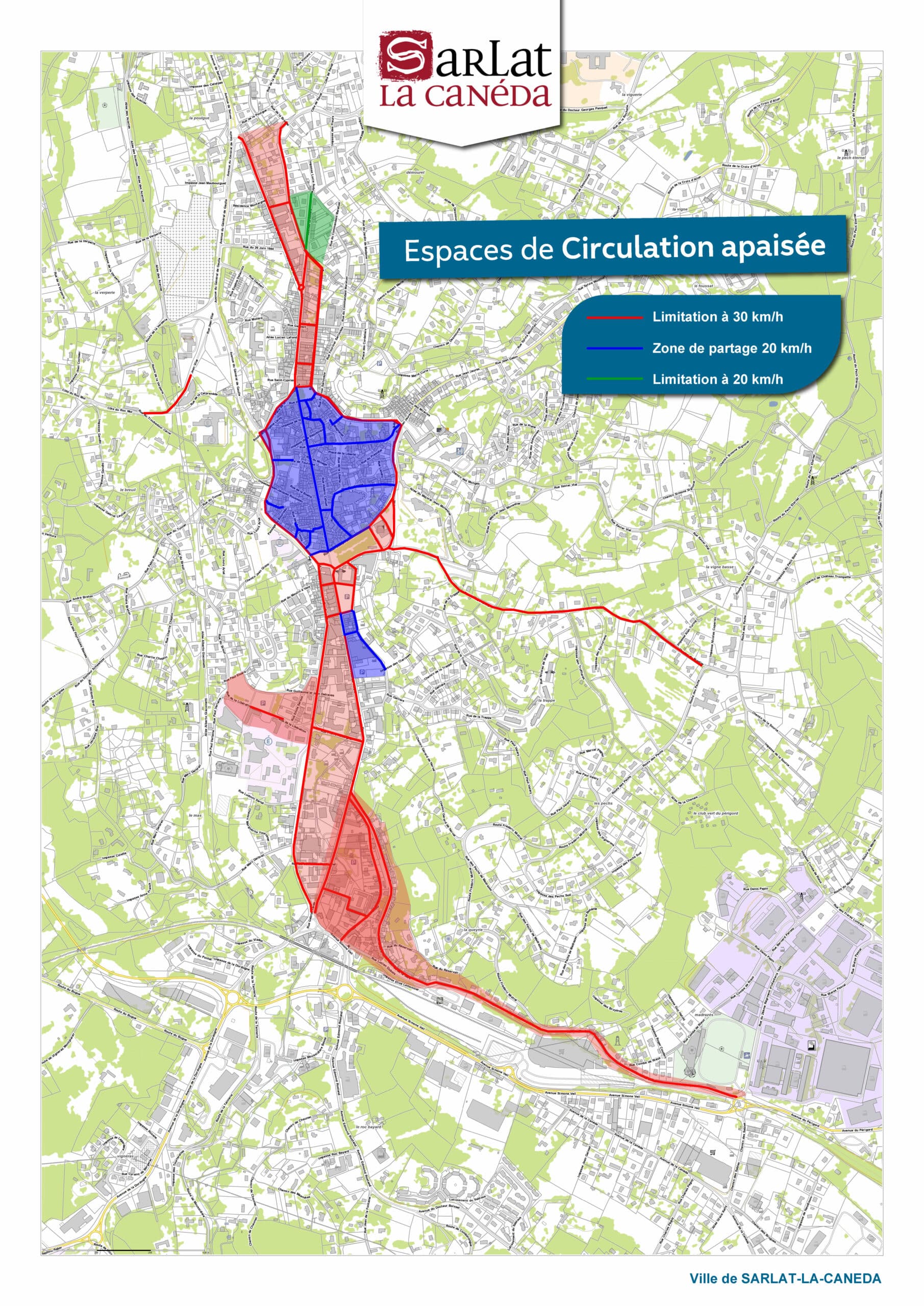 Les principales voies du grand centre-ville de Sarlat sont limitées à 30 km/h. Cette mesure vise à améliorer la sécurité et à favoriser la cohabitation entre tous les usagers : véhicules motorisés, piétons et cyclistes.