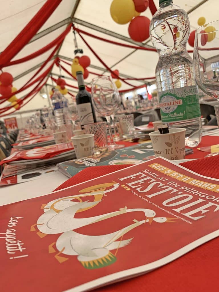Le dimanche midi, rendez-vous au Centre culturel de Sarlat pour le grand banquet de Fest’oie ! Une quinzaine de plats réalisés par des Chefs, avec du foie gras à volonté, le tout servi au rythme des bandas. Pensez à réserver votre place à l’avance (ouverture des ventes en novembre pour le premier week-end de mars suivant), car ce repas est toujours très prisé et se remplit en quelques heures !